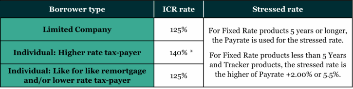 The table shows our current ICRs. To find out our maximum lending amount for an individual property based on these levels, head over to our Illustrative Calculator.